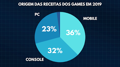 O mercado mobile arrecadou em 2019, o percentual de 36% de todo o dinheiro do mercado dos games, o que somou a quantia de U$64,4bi.